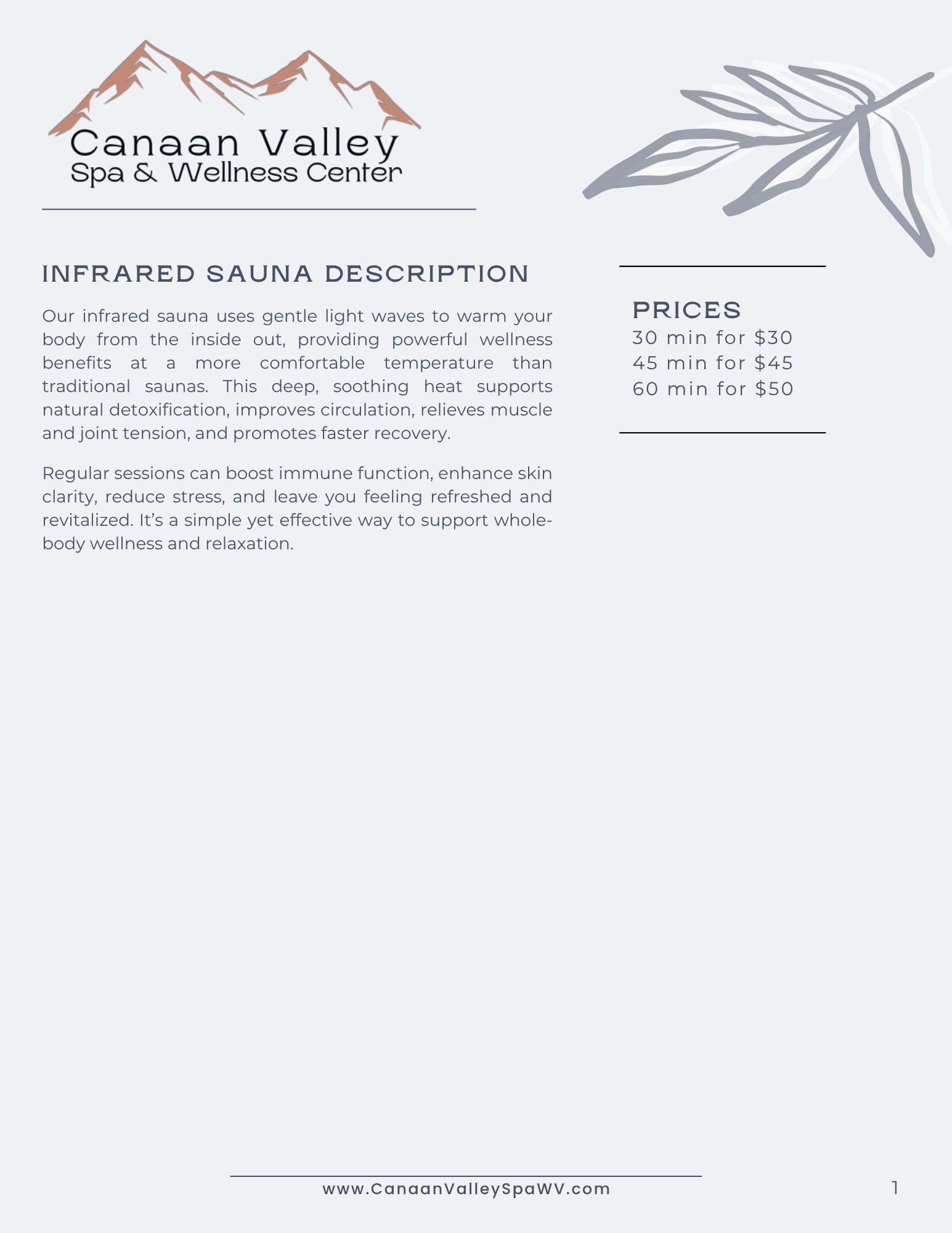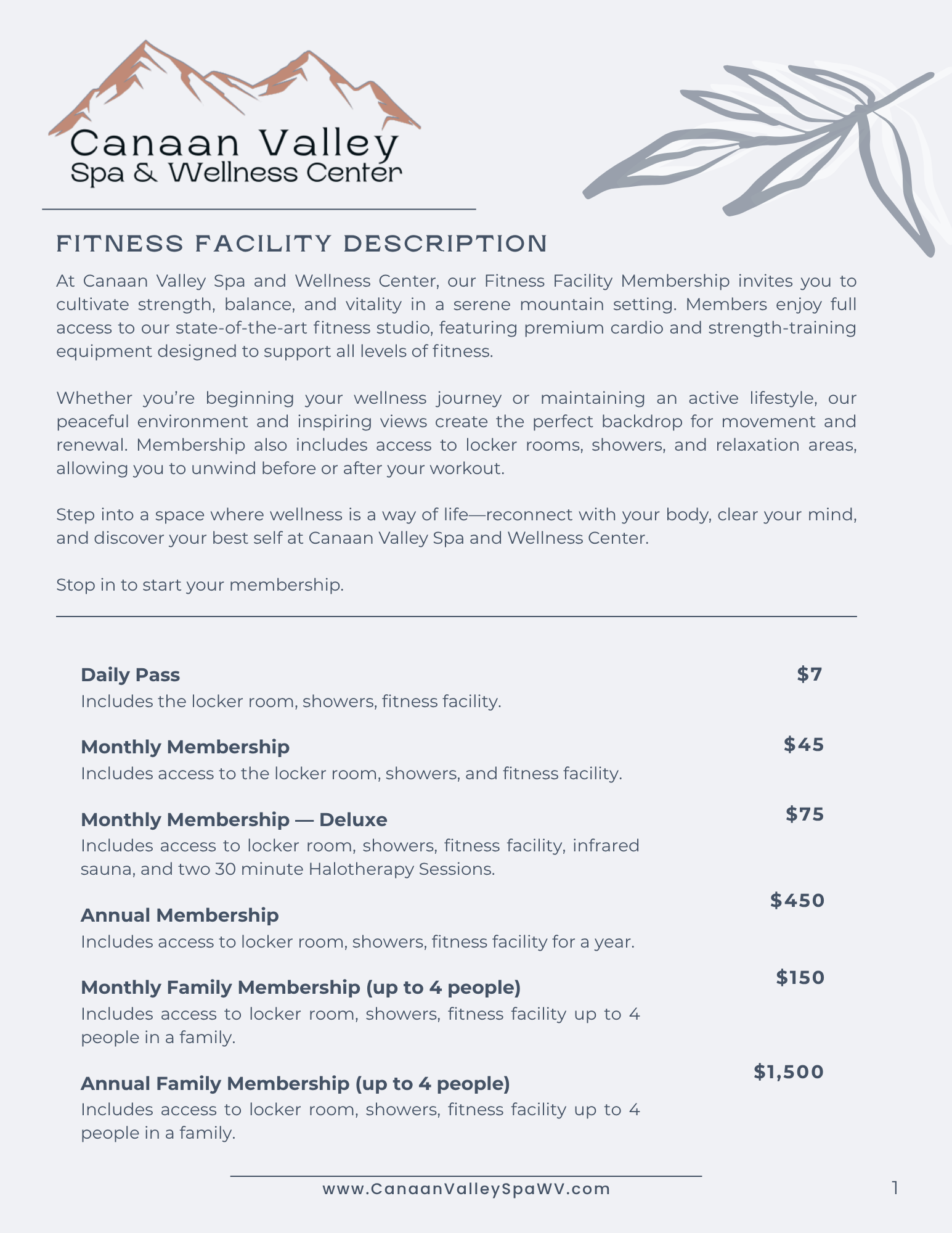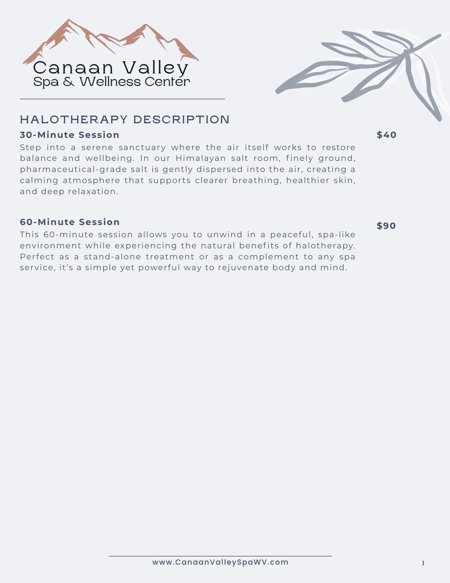 Your Journey to Wellness Begins Here Whether you’re a local resident or visiting Canaan Valley for the first time, we invite you to experience the transformative power of Canaan Valley Spa and Wellness Center. Step away from the stresses of daily life and immerse yourself in a world of relaxation, rejuvenation, and renewal. From the moment you walk through our doors, our dedicated team will ensure that your experience is nothing short of extraordinary.